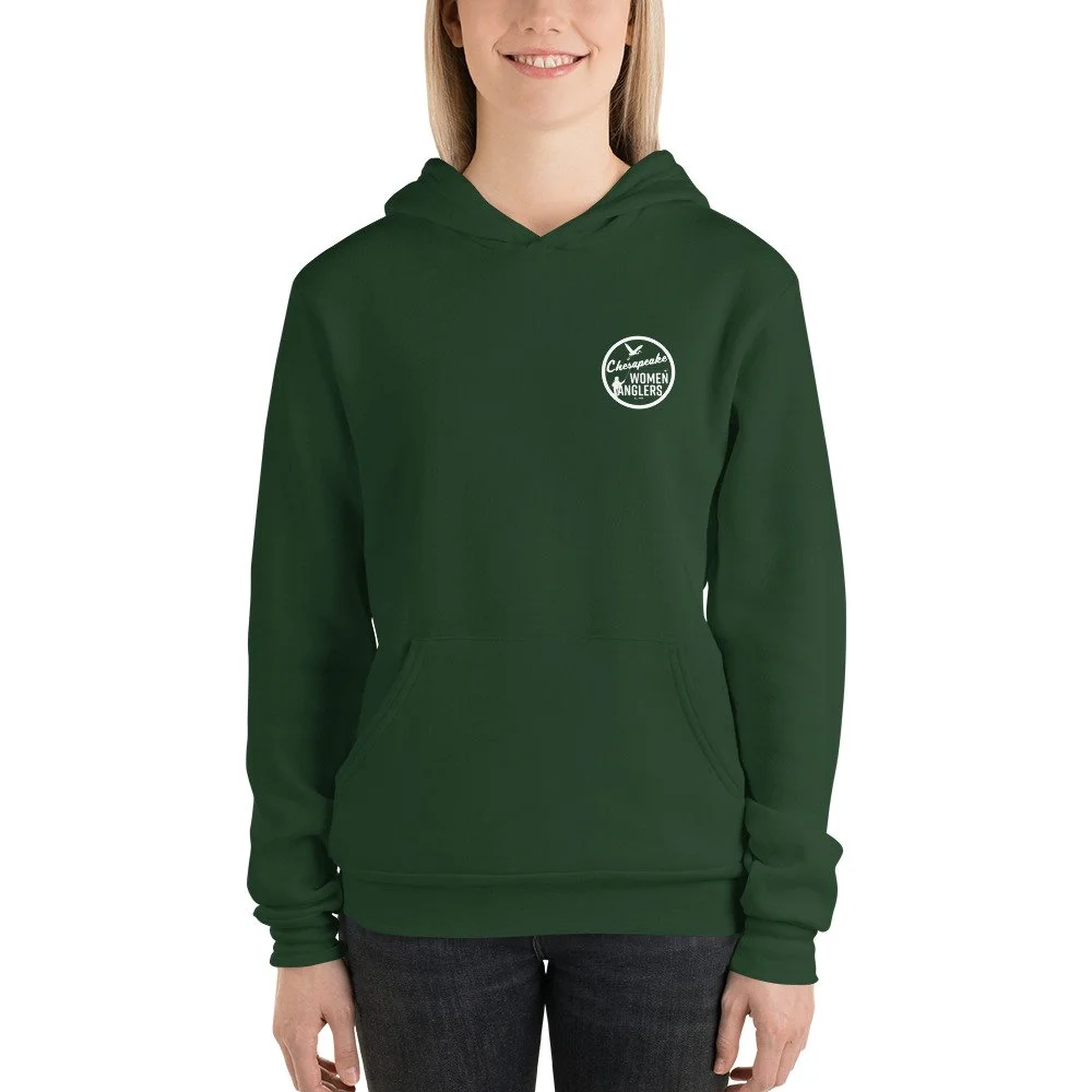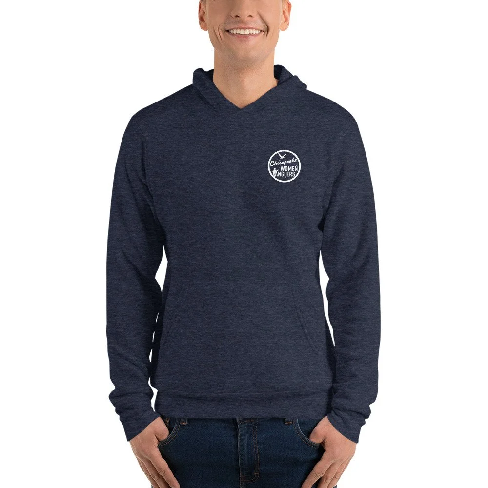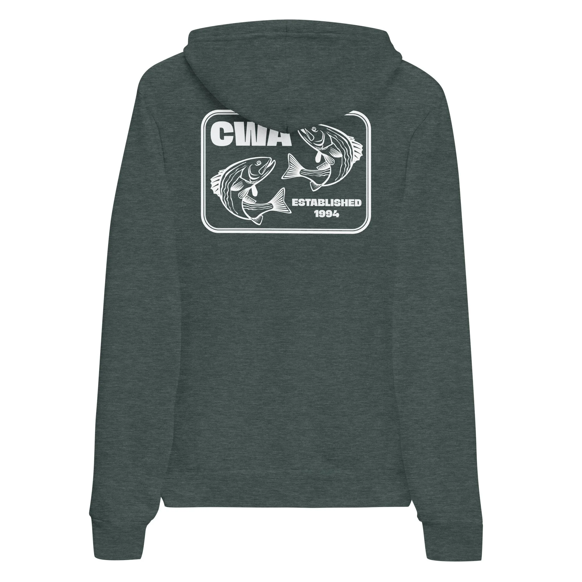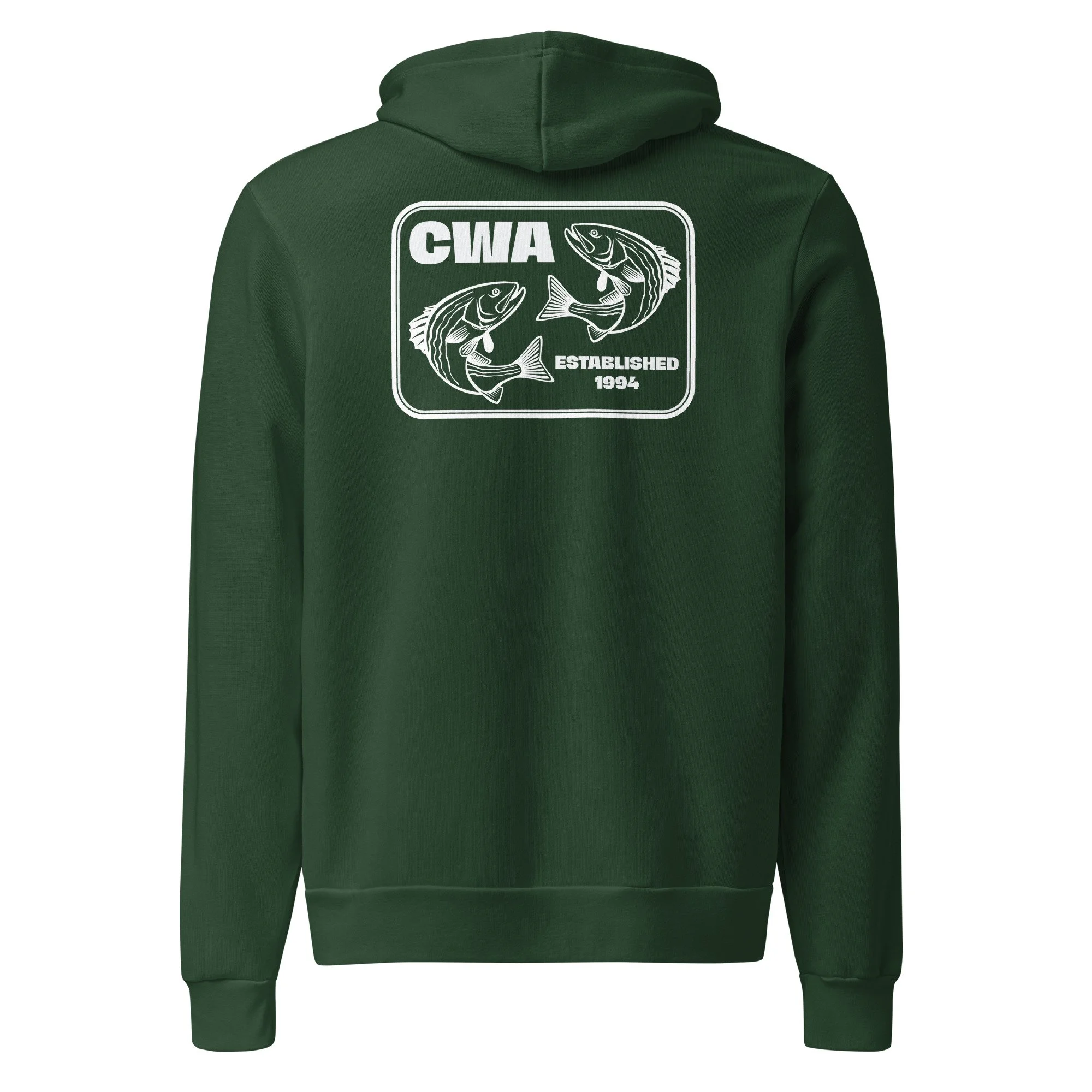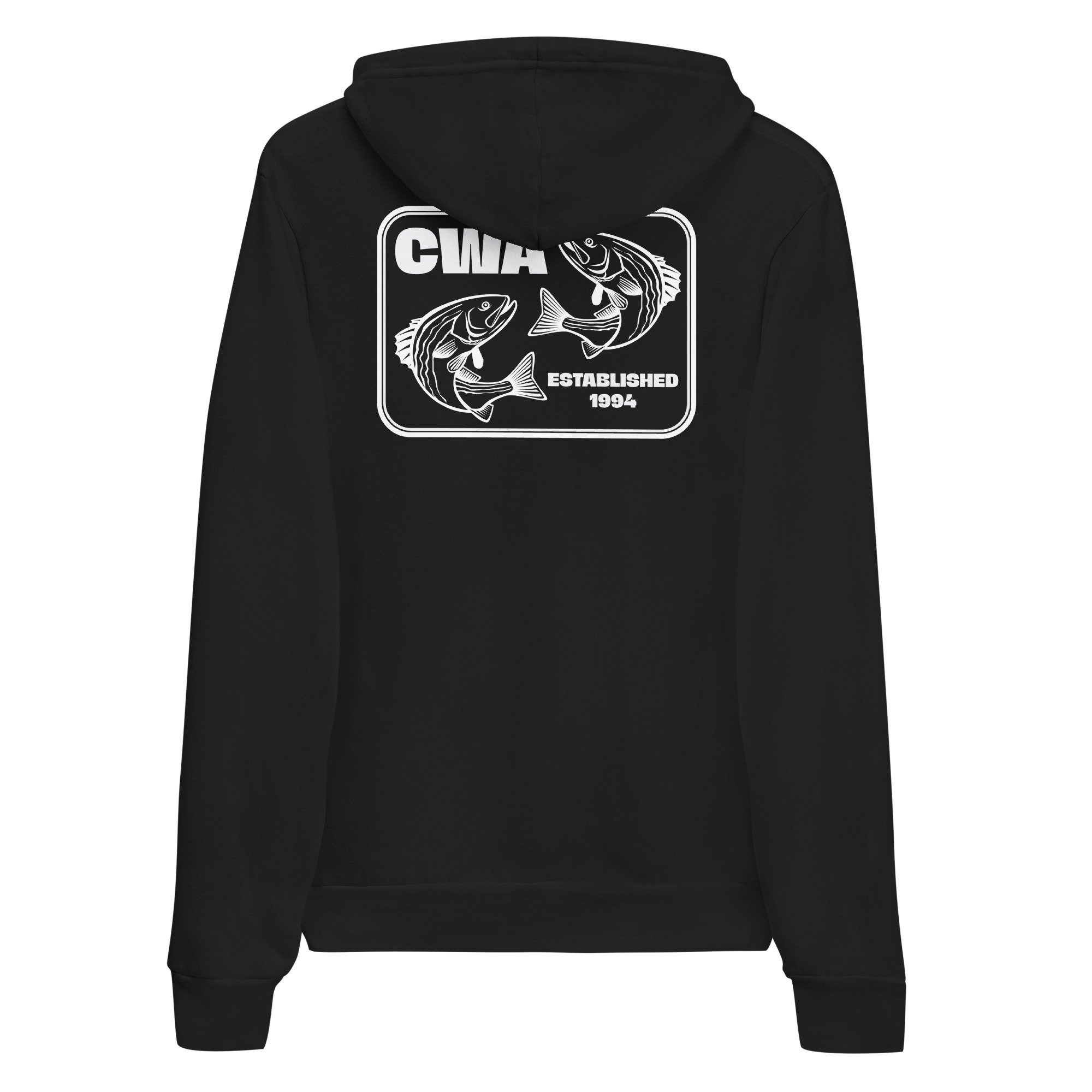 A soft and comfy unisex hoodie that fits all your hoodie needs — complete with the CWA logo on the front chest and the can o’fish design on the back. The fleece fabric makes it a great partner all year round, be it a summer evening on the stream, or a winter dinner in a mountain cabin.