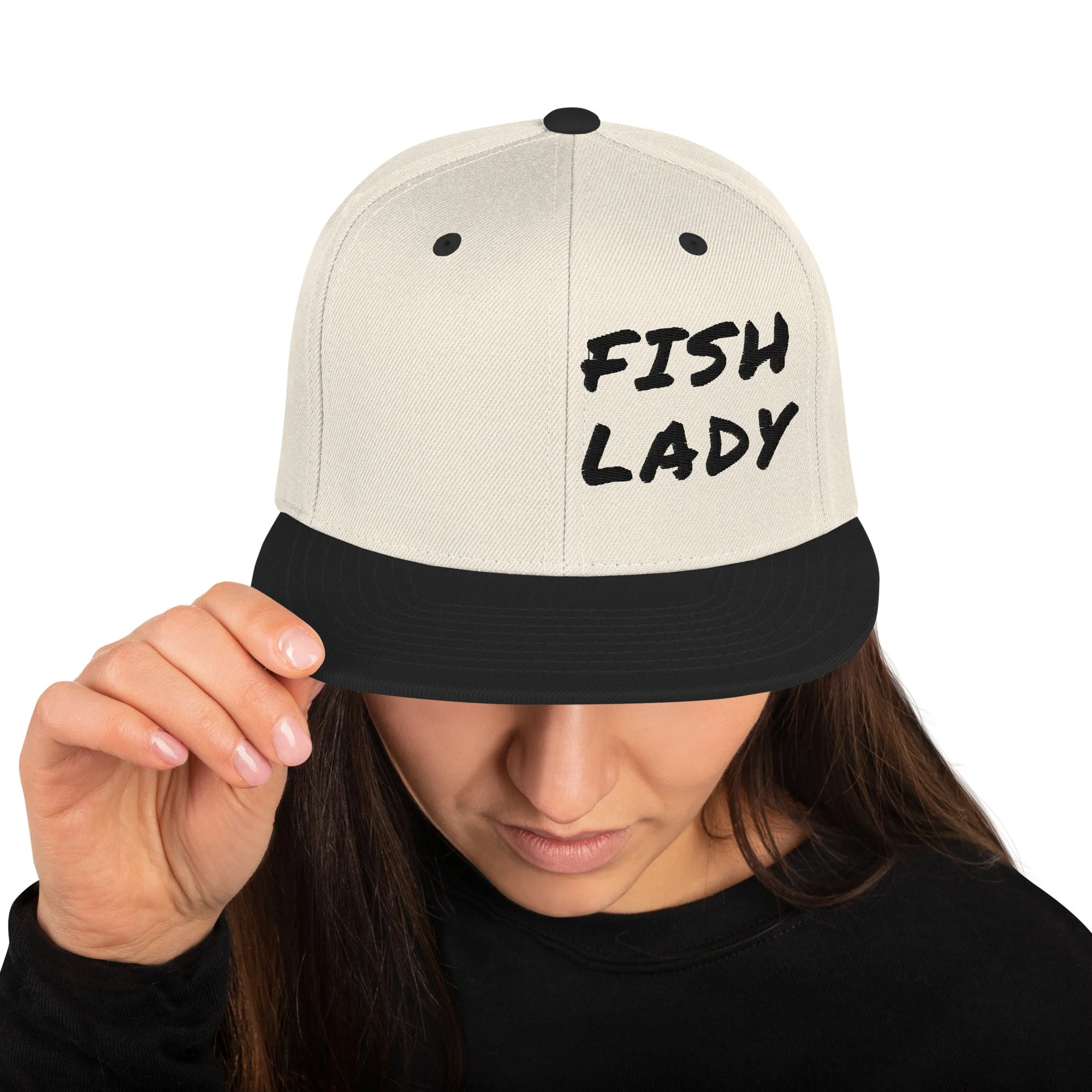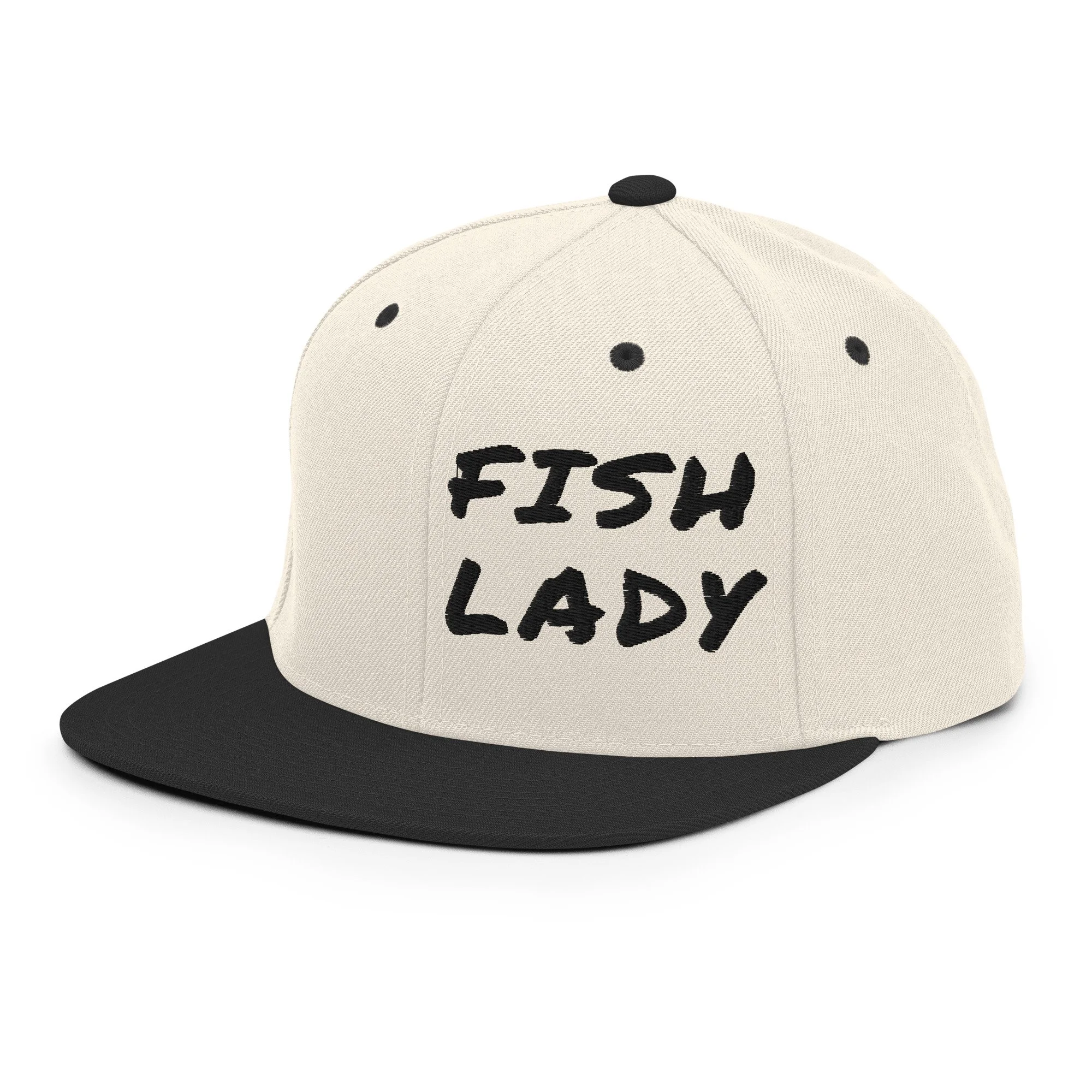 Keep the sun out of your eyes so you can focus on the fish with our exclusive “Fish Lady” hat. This hat is structured with a classic fit, flat brim, and full buckram. The adjustable snap closure makes it a comfortable, one-size-fits-most hat.